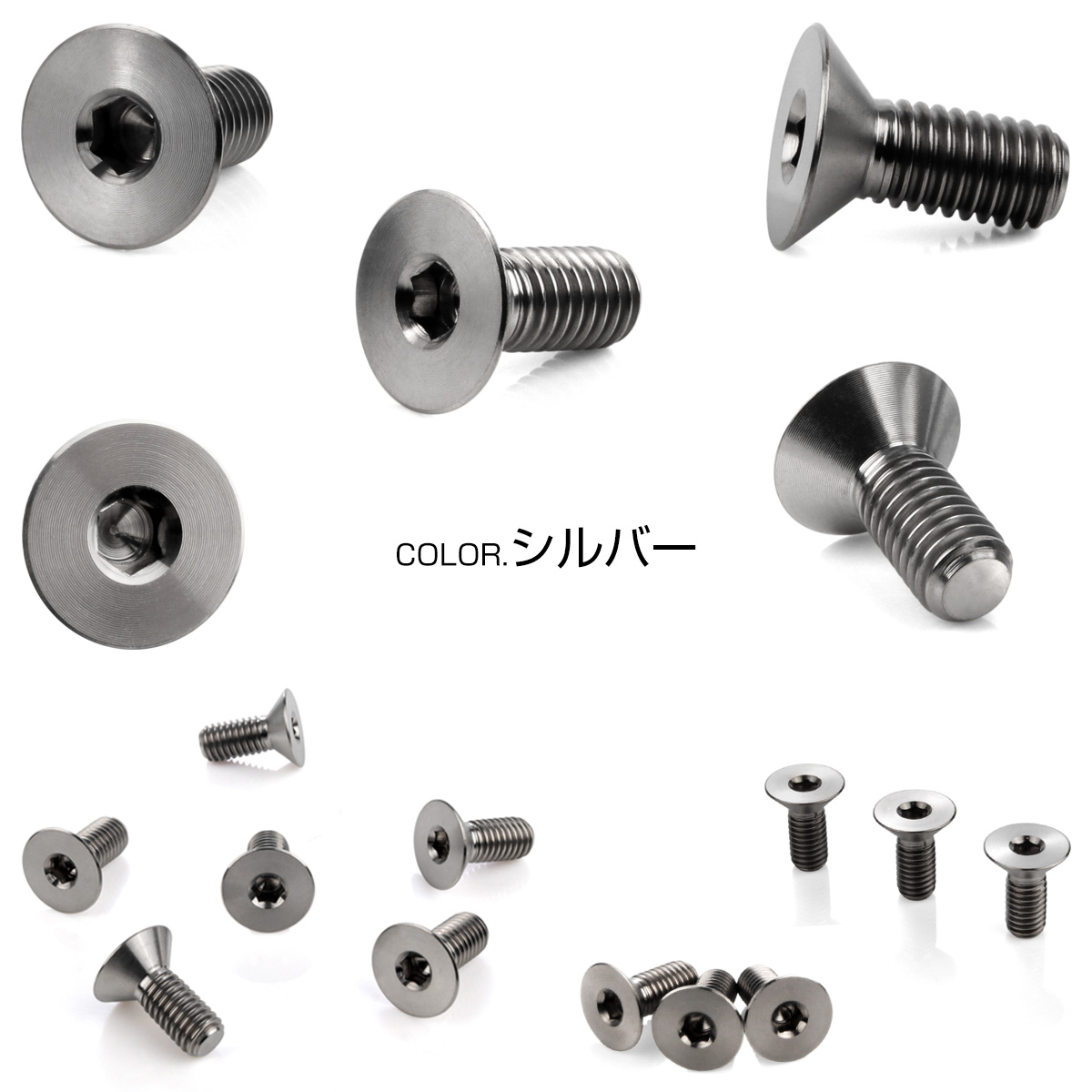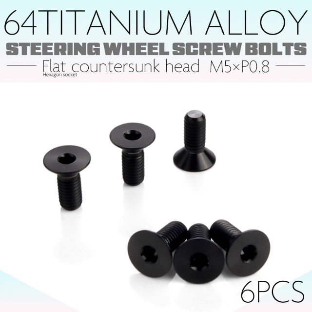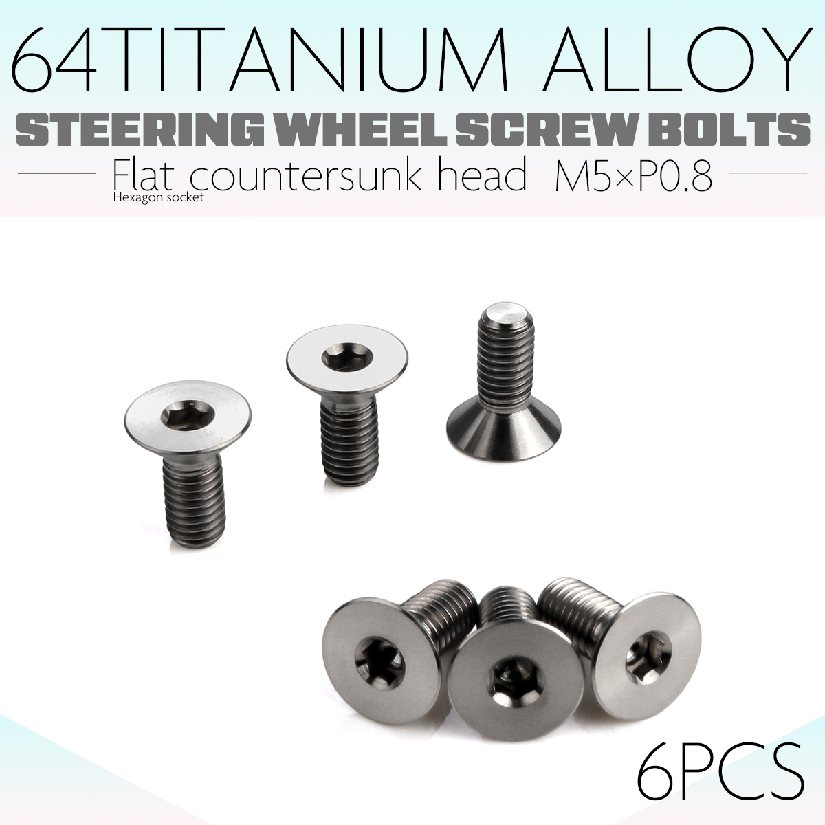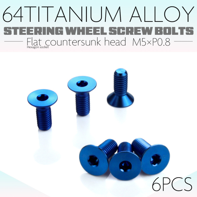 チタン ステアリングボルト M5 P0.8 6本セット 六角穴 ハンドルボルト 皿ボルト シルバー JA1894 【メール便可】