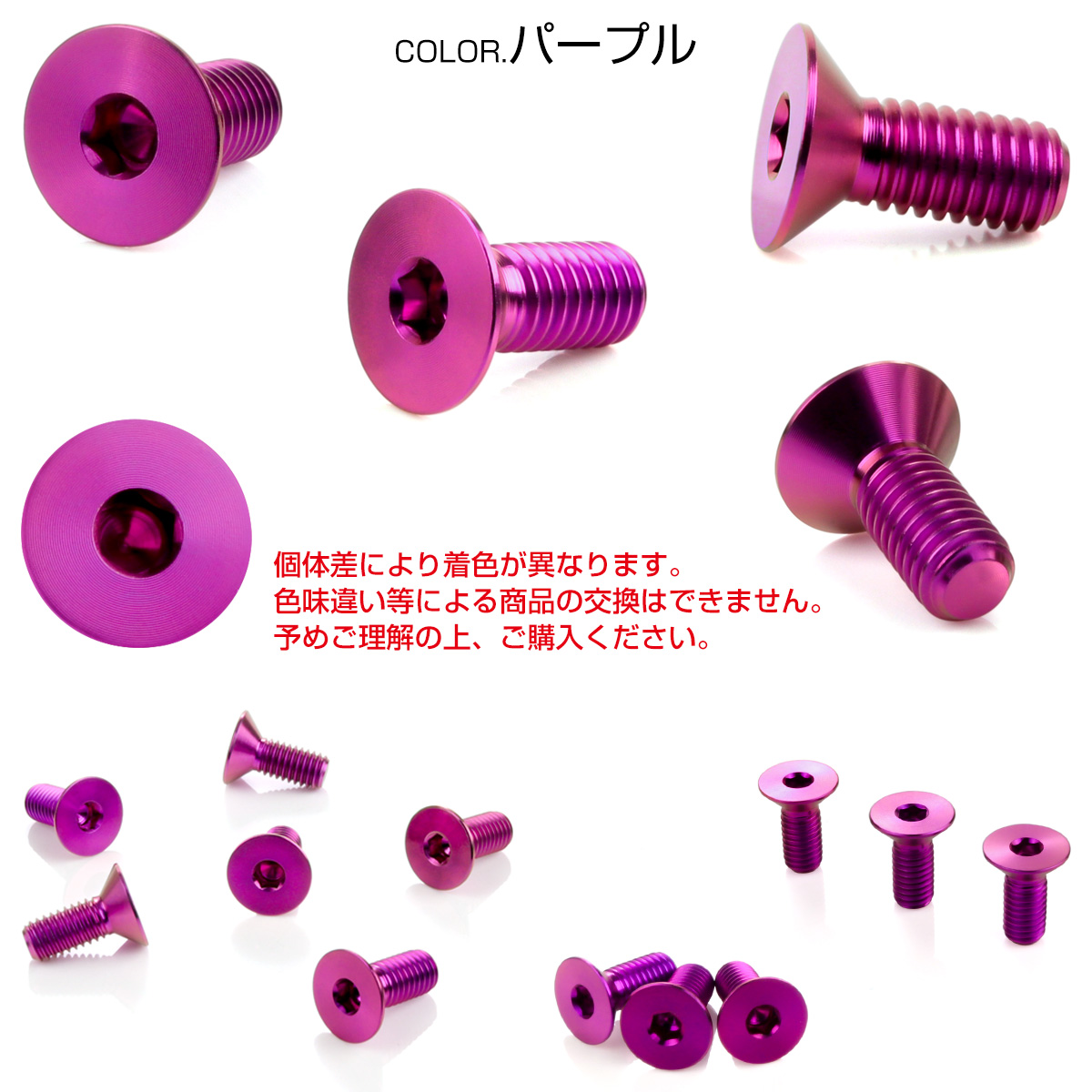 チタン ステアリングボルト M5 P0.8 6本セット 六角穴 ハンドルボルト 皿ボルト パープル JA1898 【メール便可】