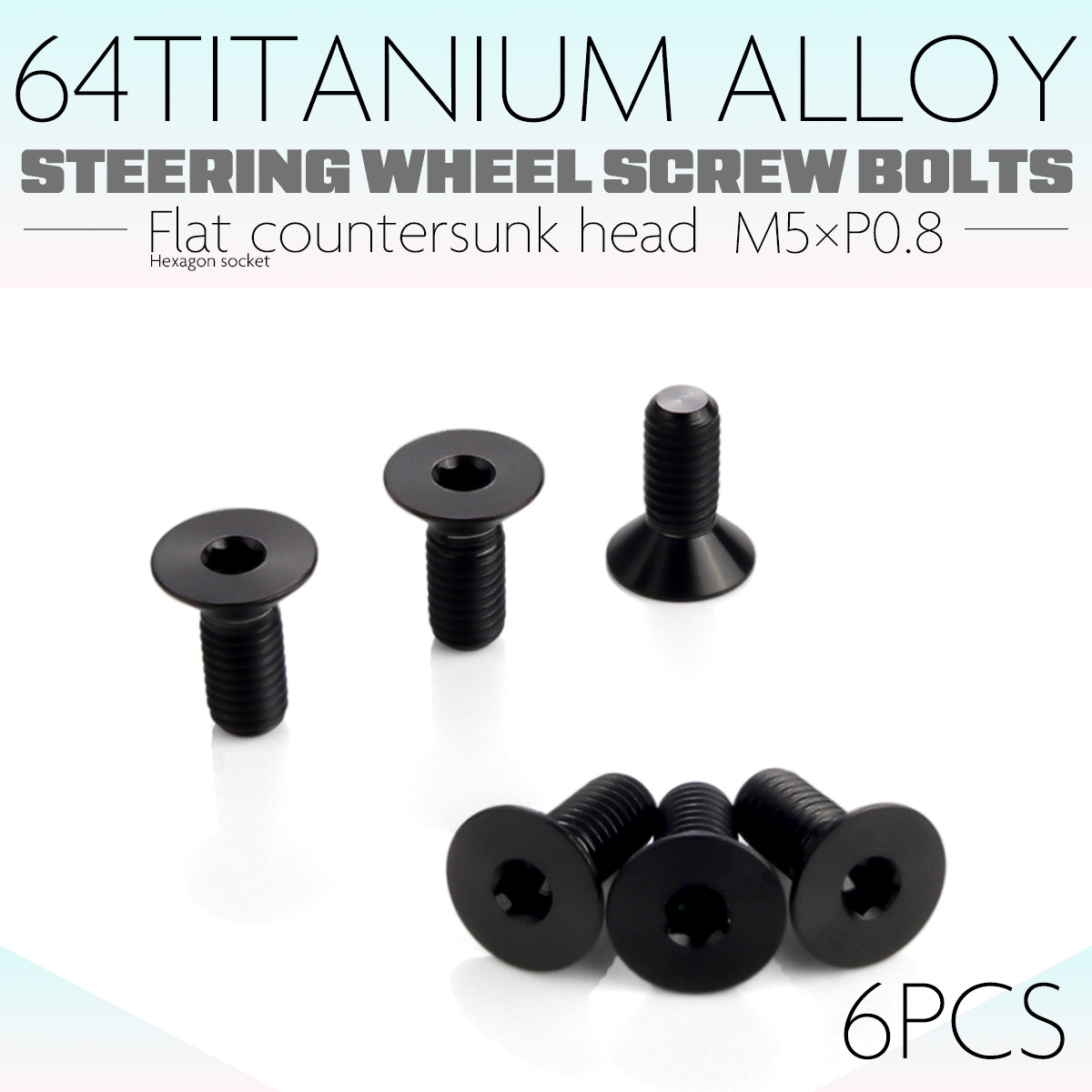 チタン ステアリングボルト M5 P0.8 6本セット 六角穴 ハンドルボルト 皿ボルト ブラック JA1899 【メール便可】