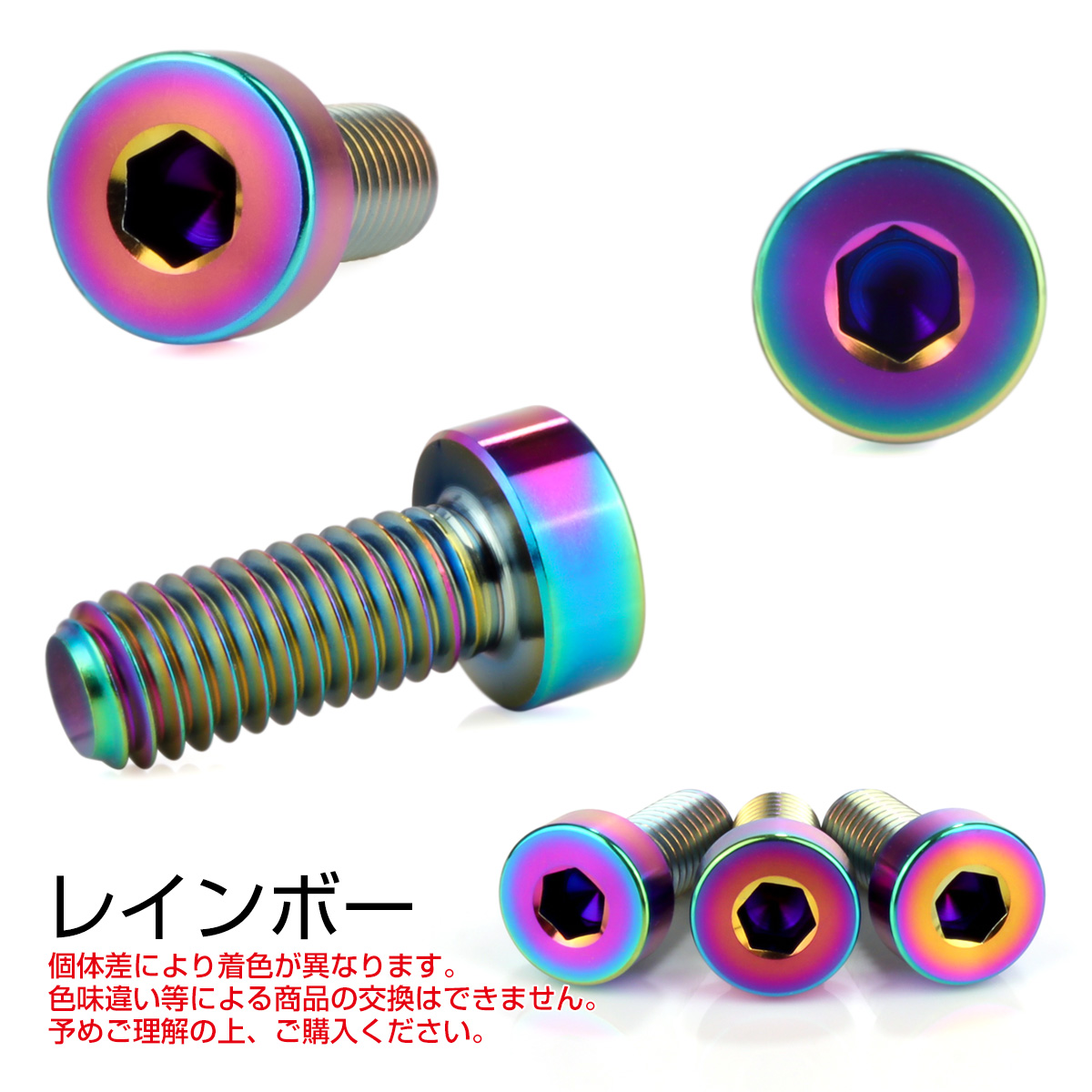 チタンボルト M6×20mm P1.0 キャップボルト 六角穴付 低頭ボルト ローヘッド 低頭キャップ レインボー 虹色 JA2408 【メール便可】