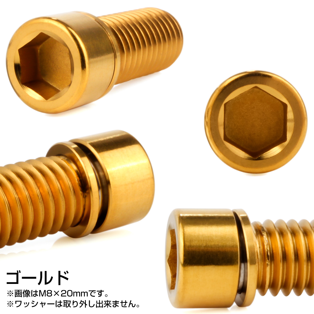 チタンボルト M8×20mm P1.25 ワッシャー組込 小頭 キャップボルト 六角穴付き 座金組込ねじ ゴールド JA2452 【メール便可】