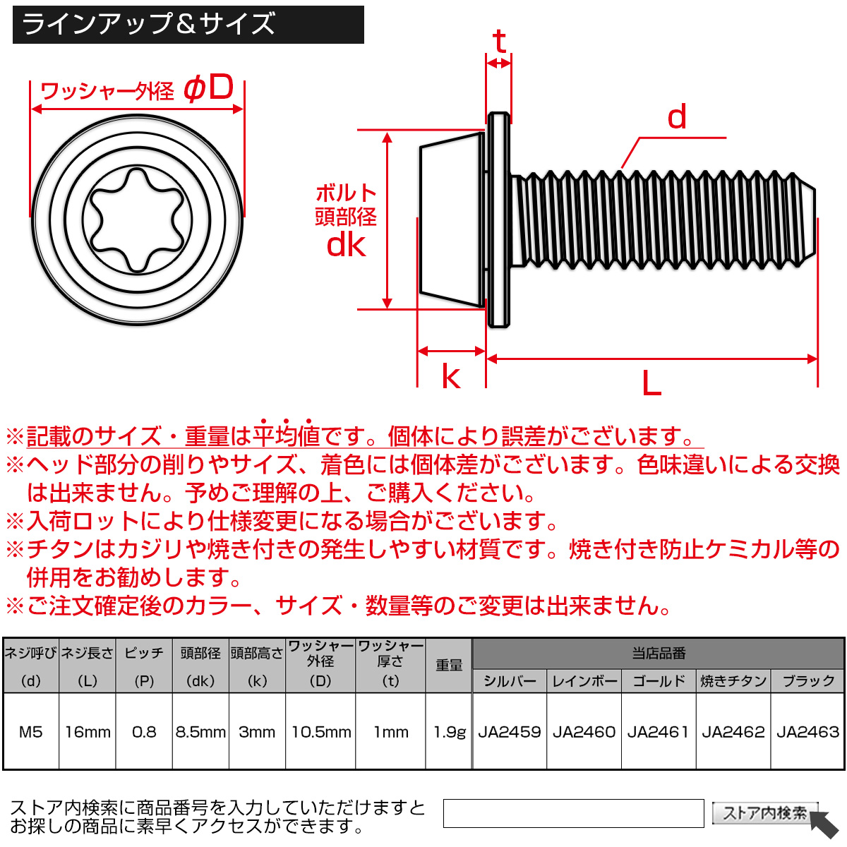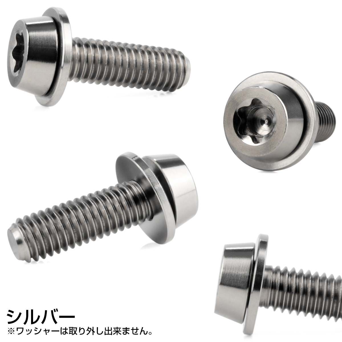 チタンボルト M5×16mm P0.8 ワッシャー組込 ローヘッド テーパー キャップボルト トルクス穴付 低頭キャップ シルバー JA2459 【メール便可】