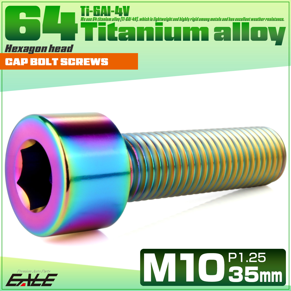チタンボルト M10×35mm P1.25 キャップボルト キャップスクリュー 六角穴付き ボルト レインボー JA2503 【メール便可】