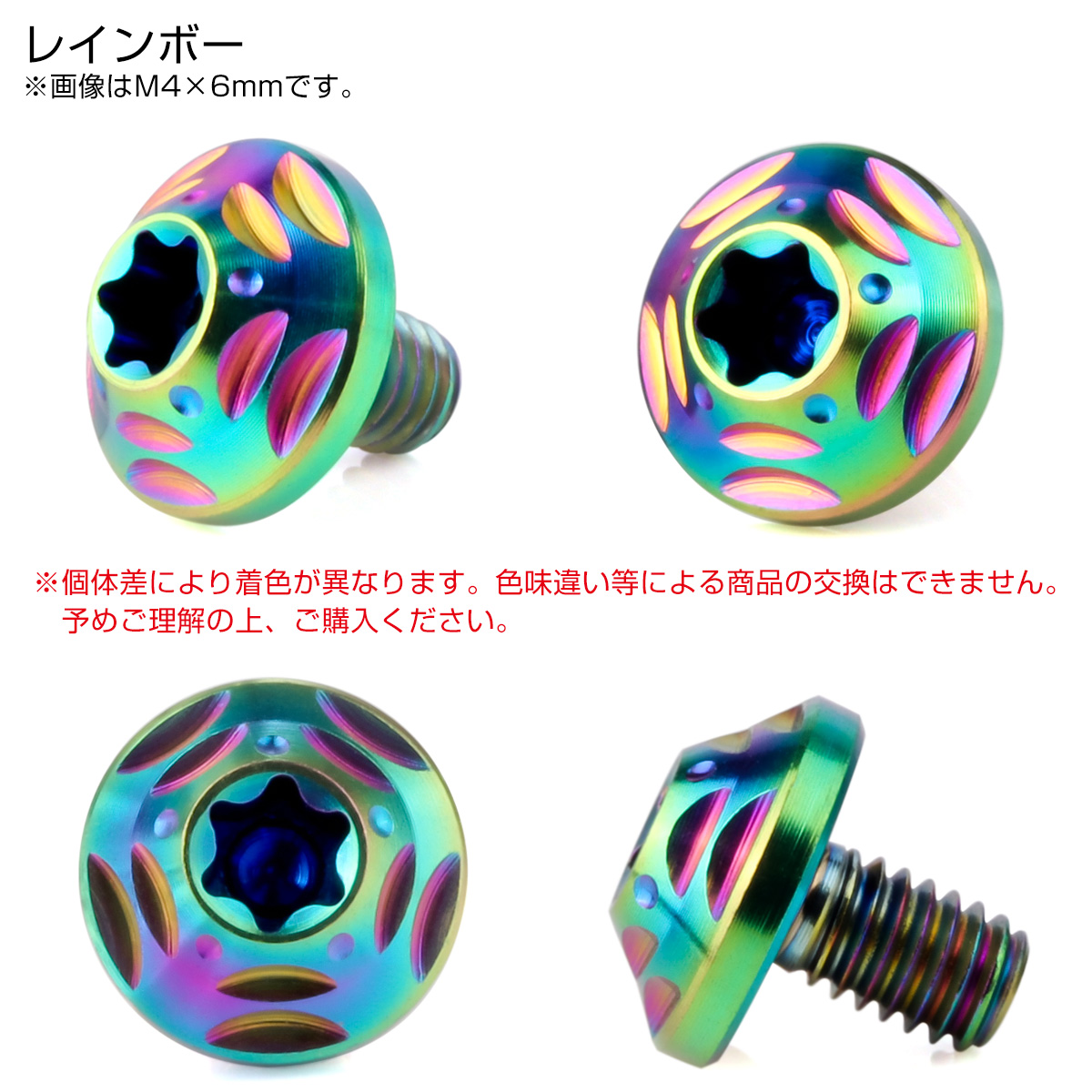チタンボルト M4×25mm P0.7 ボタンボルト フランジ付き トルクス穴 レインボー JA2578 【メール便可】