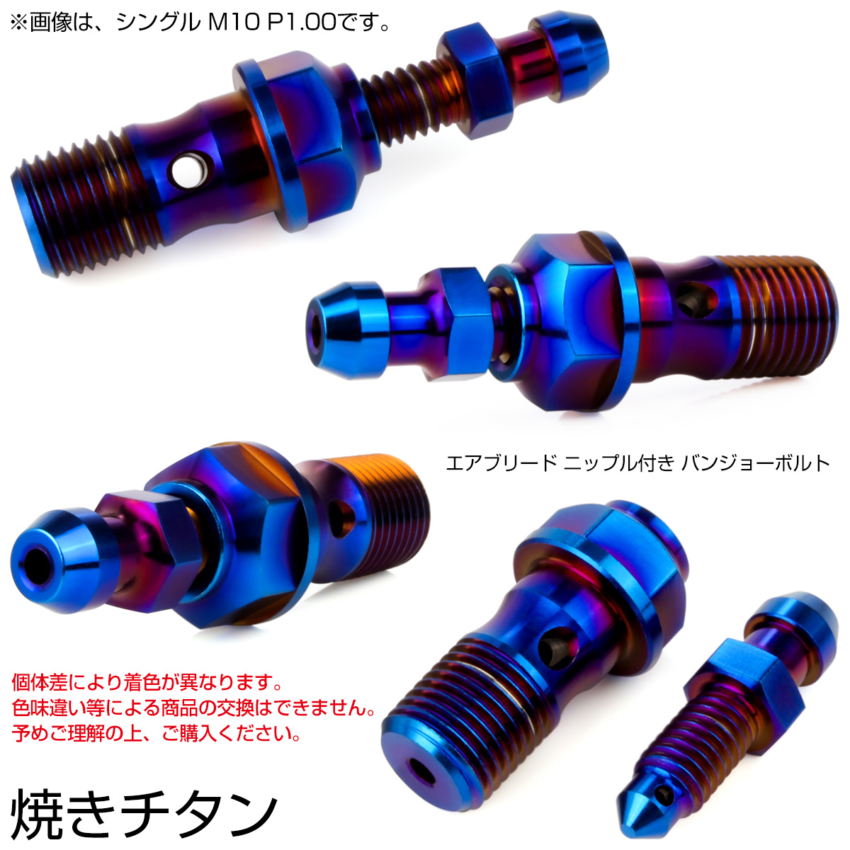 チタン M10 P1.00 バンジョーボルト エアブリーダー ニップル付 ブレーキライン シングル 焼きチタン JA2587 【メール便可】
