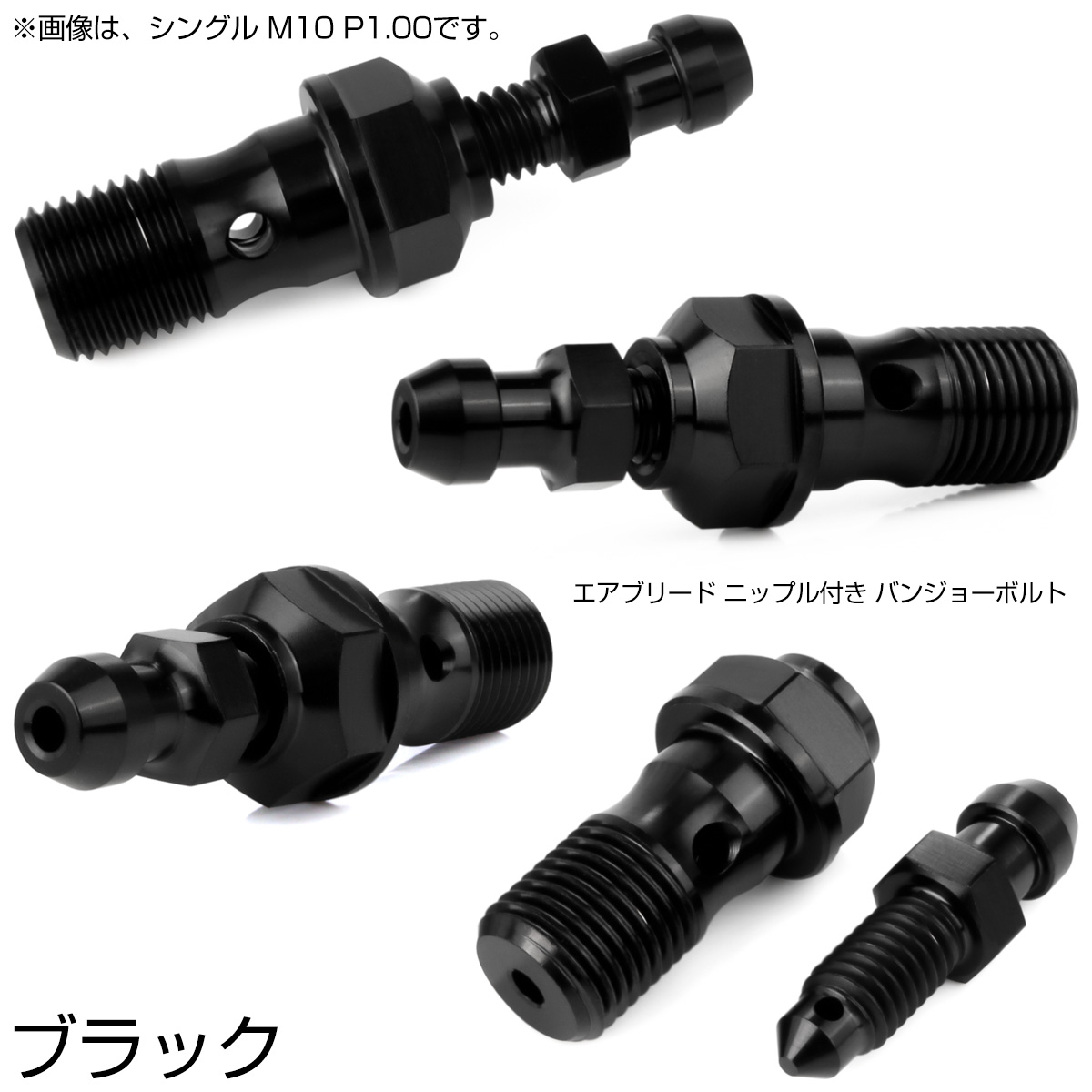 チタン M10 P1.25 バンジョーボルト エアブリーダー ニップル付 ブレーキライン シングル ブラック JA2593 【メール便可】