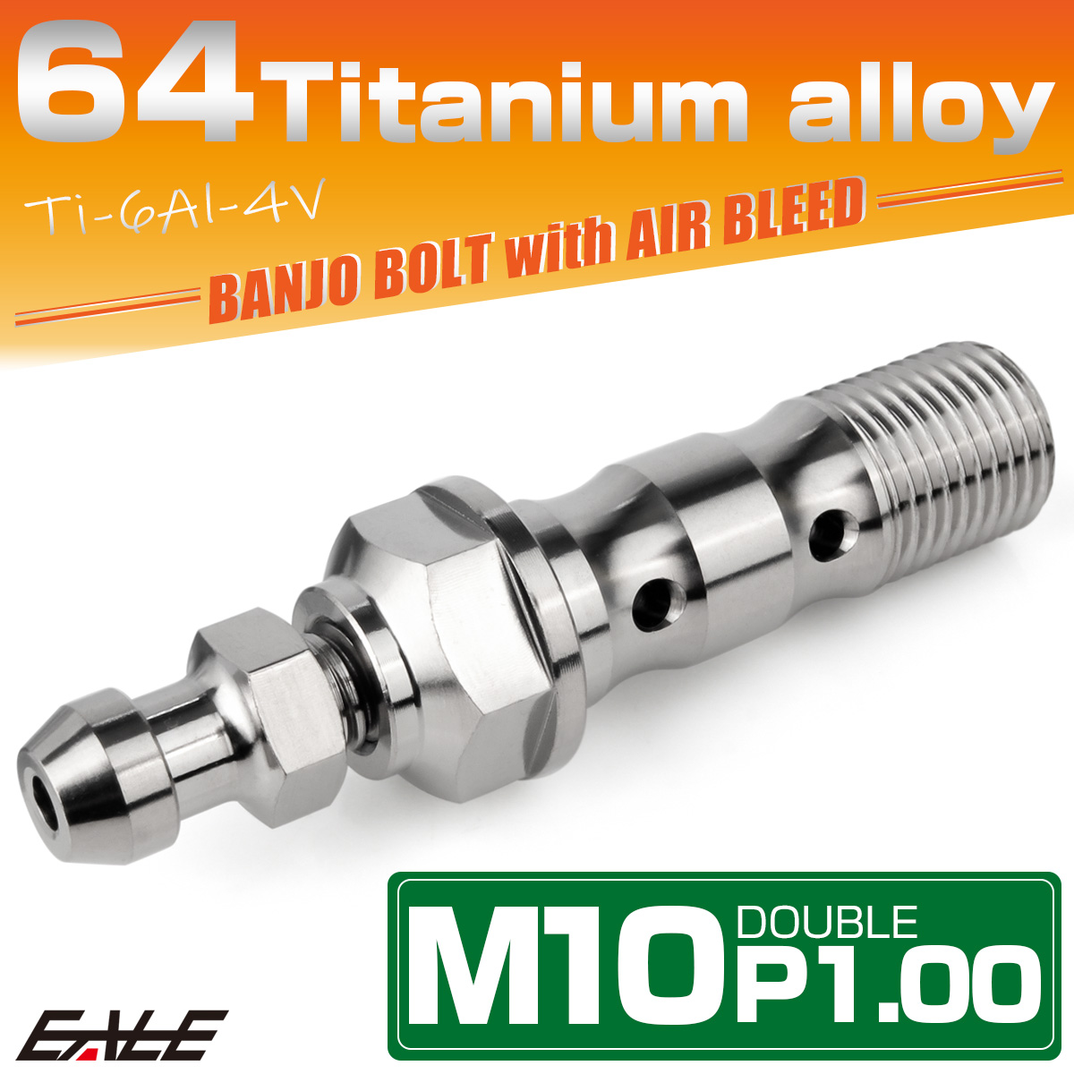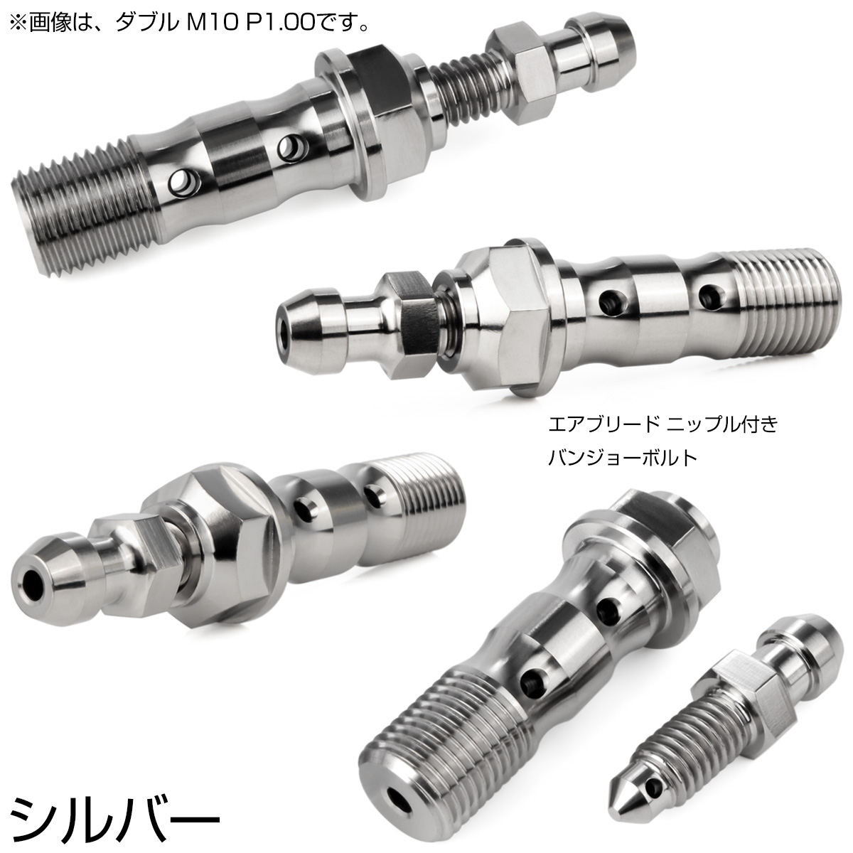 チタン M10 P1.00 バンジョーボルト エアブリーダー ニップル付 ブレーキライン ダブル シルバー JA2594 【メール便可】