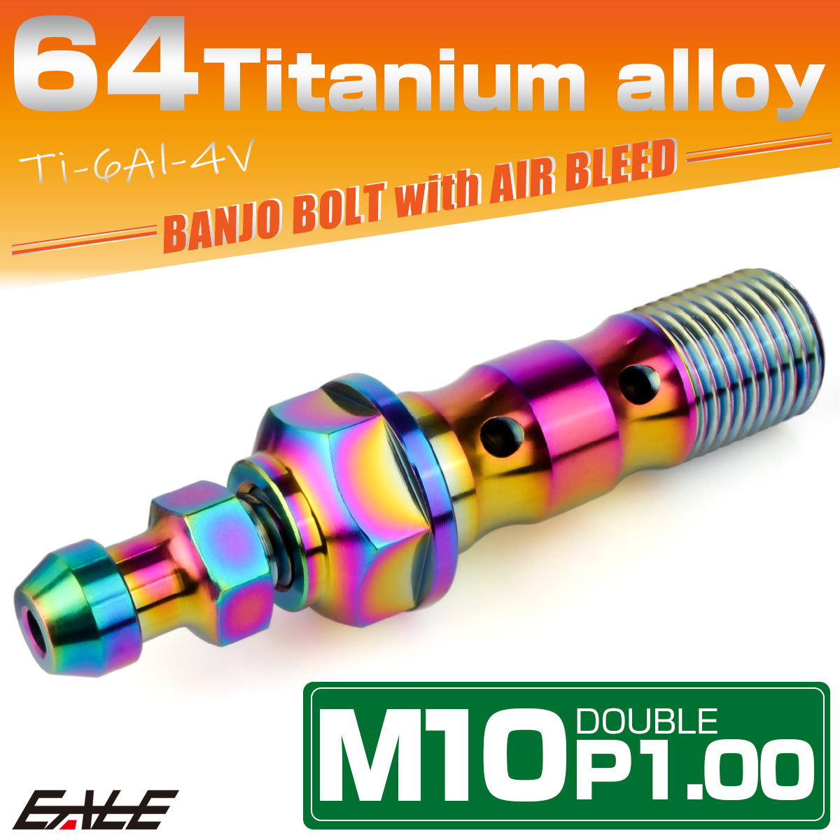 チタン M10 P1.00 バンジョーボルト エアブリーダー ニップル付 ブレーキライン ダブル レインボー JA2595 【メール便可】