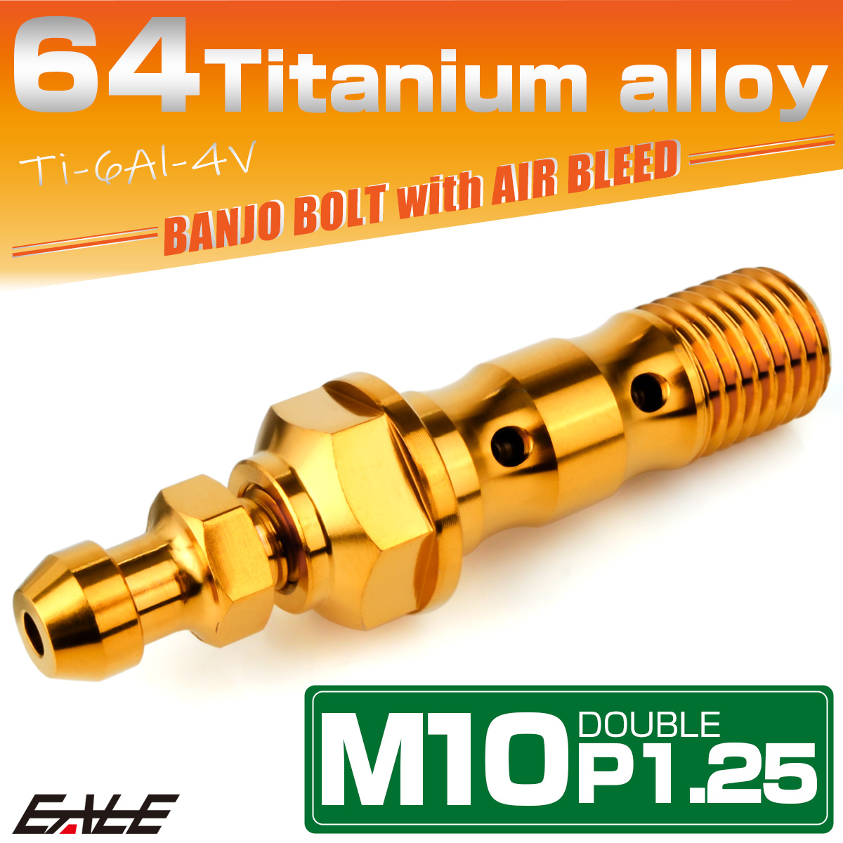 チタン M10 P1.25 バンジョーボルト エアブリーダー ニップル付 ブレーキライン ダブル ゴールド JA2601 【メール便可】