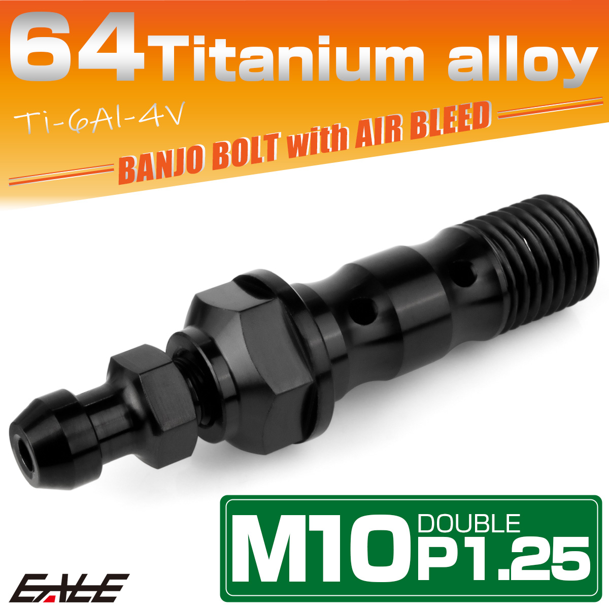 チタン M10 P1.25 バンジョーボルト エアブリーダー ニップル付 ブレーキライン ダブル ブラック JA2603 【メール便可】