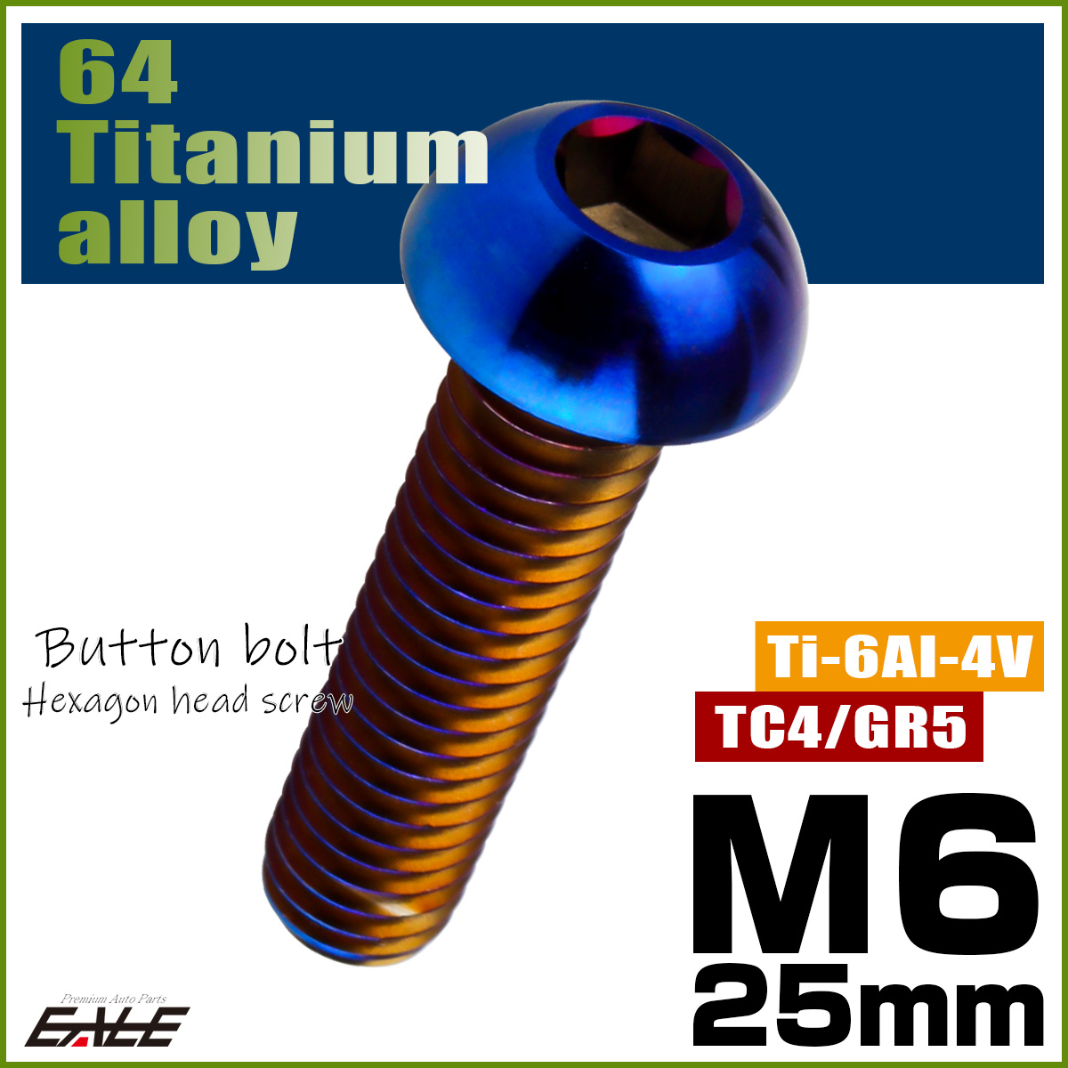 チタンボルト M6×25mm P1.0 ボタンボルト 六角穴 焼きチタンカラー ダークカラー JA2663 【メール便可】