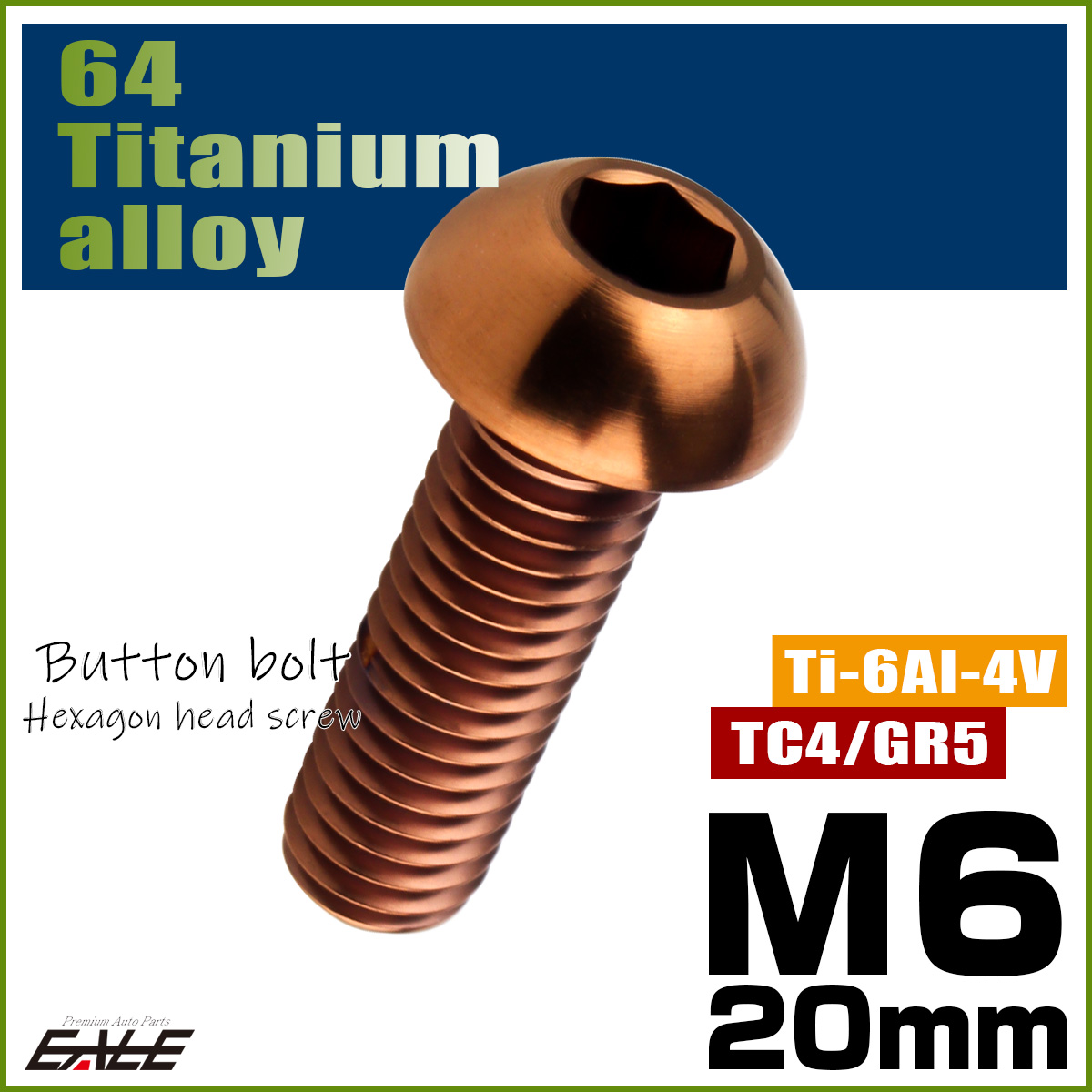 チタンボルト M6×20mm P1.0 ボタンボルト 六角穴 ブロンズ JA3114 【メール便可】