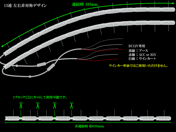高速 LED シーケンシャルウインカー システム デイライト付き ナイトライダー風 流れるウインカー ヘッドライト加工 埋め込み専用 P-184