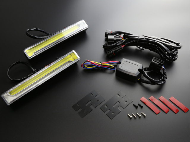 ウインカー連動 ツインカラー COB LED デイライト 180mm幅 小型 ホワイト アンバー DC12V用