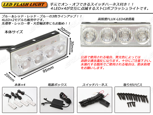 DC12V用 4LED×4ストロボフラッシュライト( P-231 P-232 P-233 )