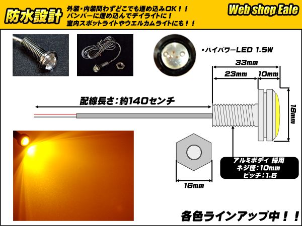 スポットライト ボルト型 ハイパワー1.5W LED ブラック アンバー P-29