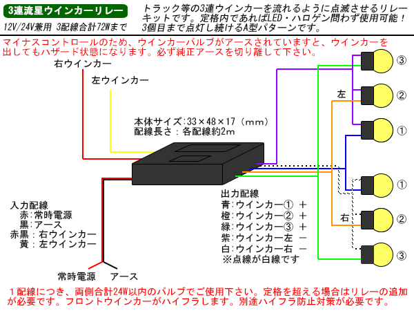 3連 流星 ウインカーリレー A型 12V 24V兼用 LEDもOK P-317【メール便可】
