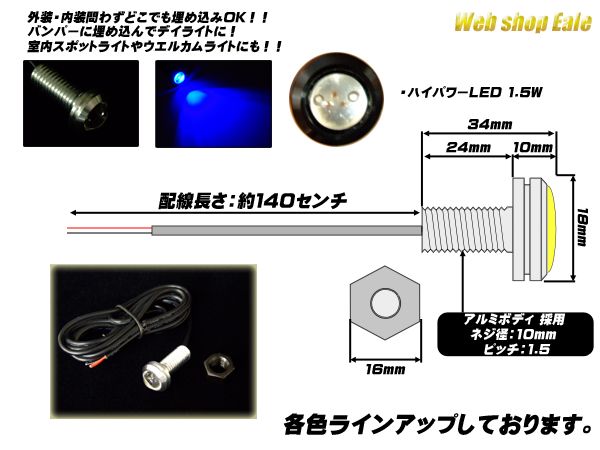 スポットライト ボルト型 ハイパワー1.5W LED シルバー ブルー P-36 【メール便可】