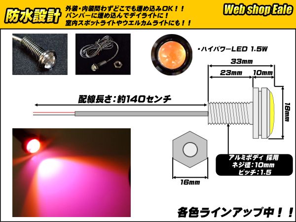 スポットライト ボルト型 ハイパワー1.5W LED ブラック ピンク P-37 【メール便可】