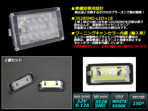 BMW LED ライセンスランプ ナンバー灯 E46クーペ後期 316Ci 330Ci M3 等 R-156 【メール便可】