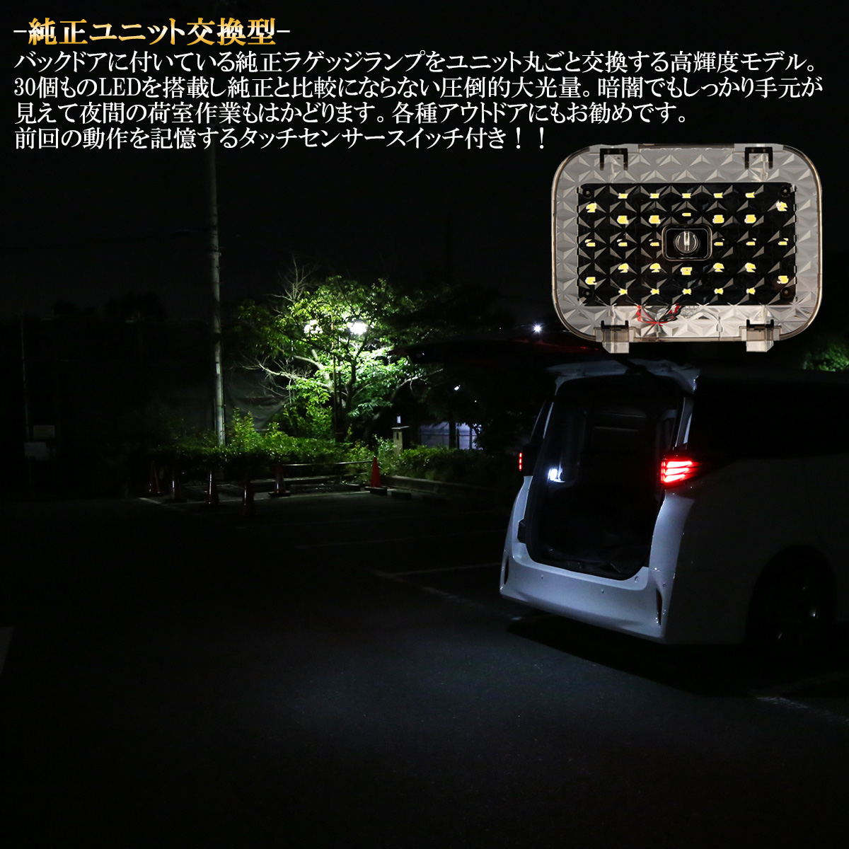 40系 ヴェルファイア アルファード ラゲッジランプ 大光量 タッチスイッチ付き バックドア LED ルームランプ R-244 【メール便可】
