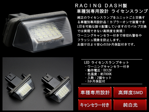 レーシングダッシュ LED ライセンス灯 プジョー 206 207 306 ブレーク 307SW 308SW 406ブレーク 407SW 5008 シトロエン C3 C4 C5 C5 ツアラー サクソ クサラ