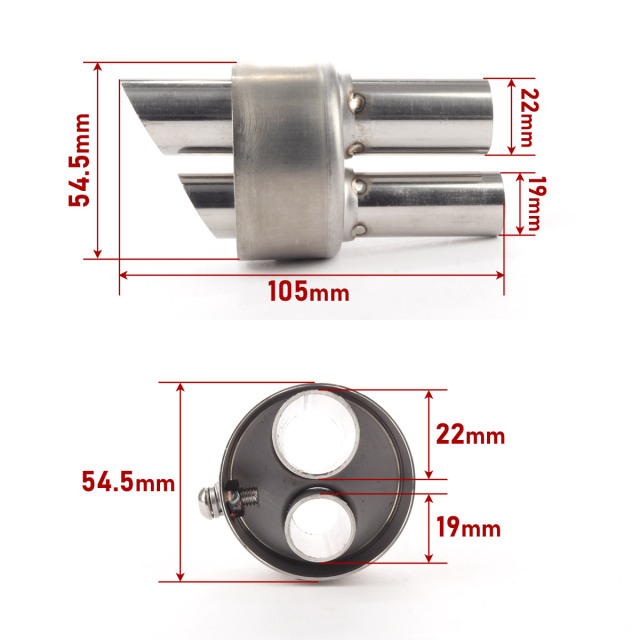 バイク 汎用 54.5mm デュアルパイプ マフラー インナーサイレンサー エンドバッフル 消音器 ステンレス 排気音抑制 S-1002