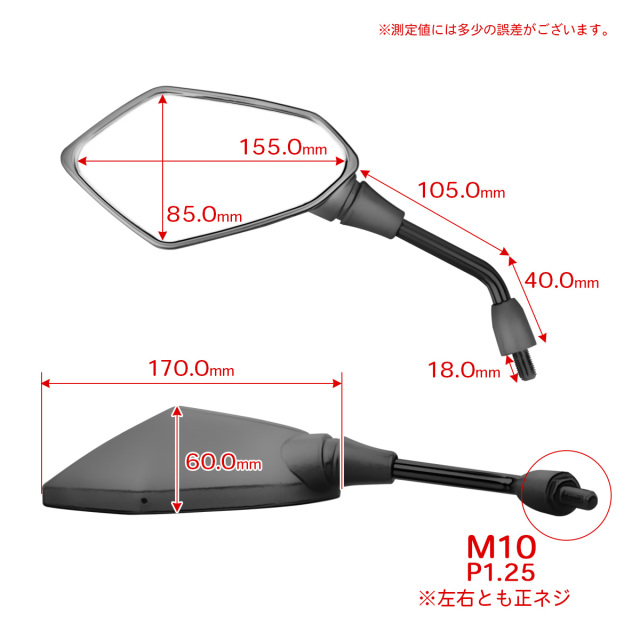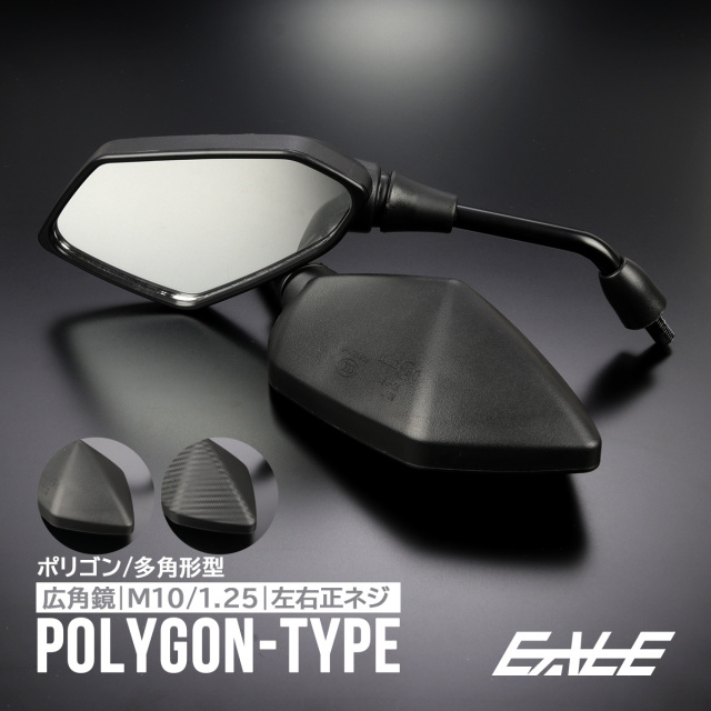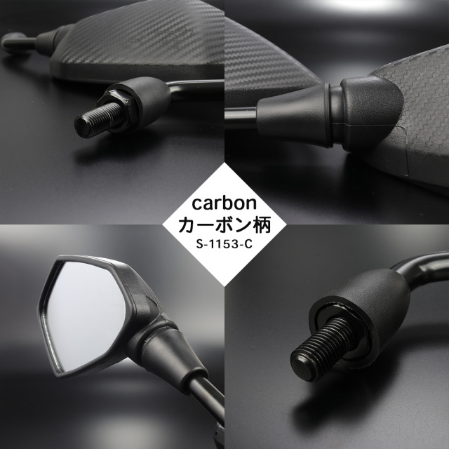 ポリゴンミラー M10 正ネジ 広角鏡 多角形 ブラック カーボン柄 左右セット S-1153