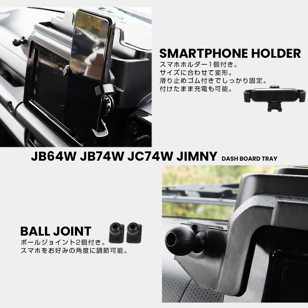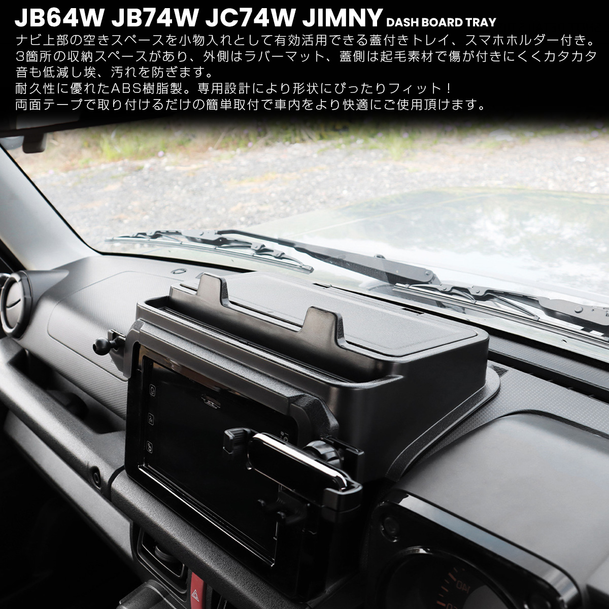 ジムニー シエラ ノマド JB64W JB74W JC74W トレイ ダッシュボード スマホホルダー付き ナビ上 インパネ 内装 収納 カスタム パーツ S-1332