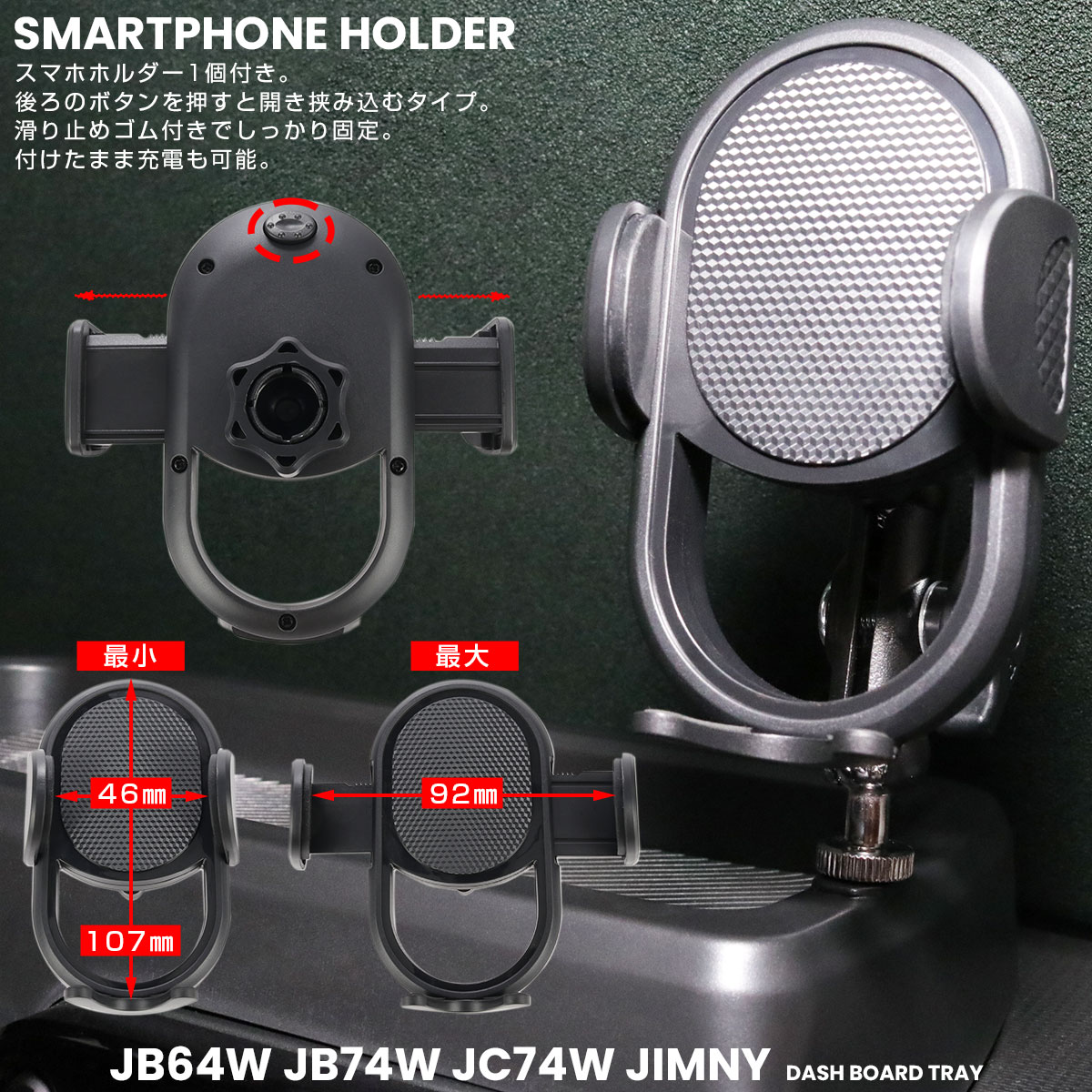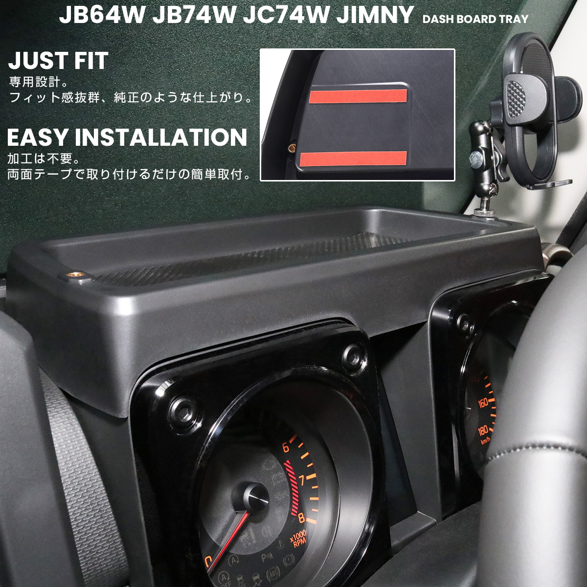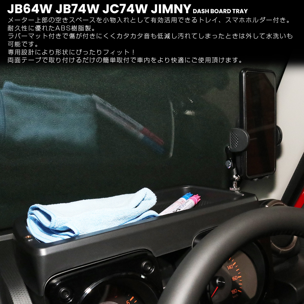 ジムニー シエラ ノマド JB64W JB74W JC74W トレイ ダッシュボード スマホホルダー付き メーターフード 内装 収納 カスタム パーツ S-1334