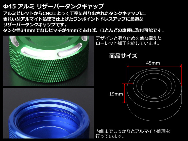 • Φ45 アルミ削り出し リザーバー タンク キャップ フロント&リア ブレーキ 油圧クラッチ アルマイト仕上げ 7色 S-345