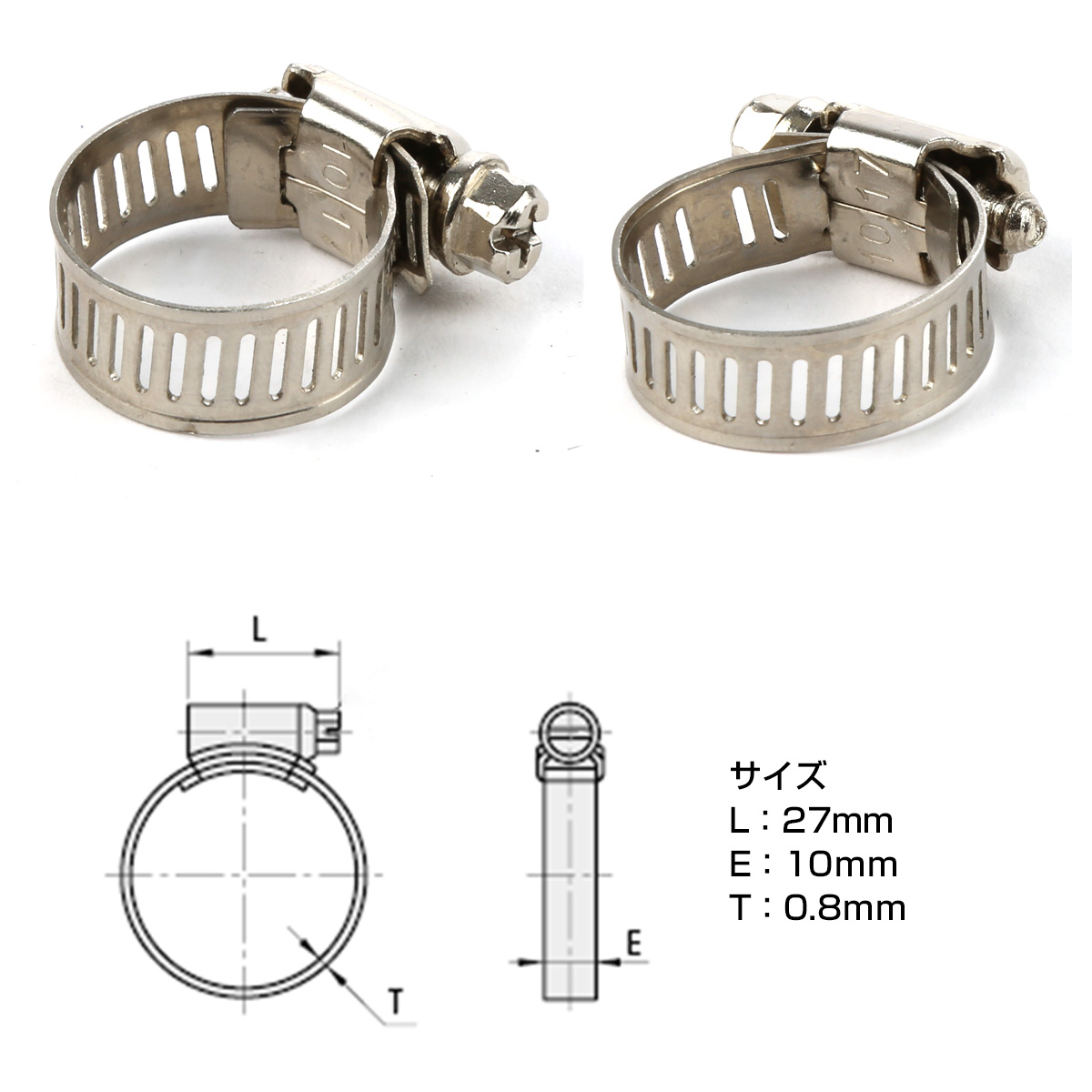 ホースバンド 幅10mm 16-25mm ステンレス製 汎用バンド 2個セット S-418【メール便可】