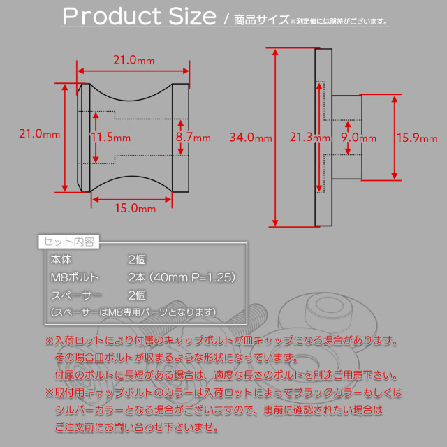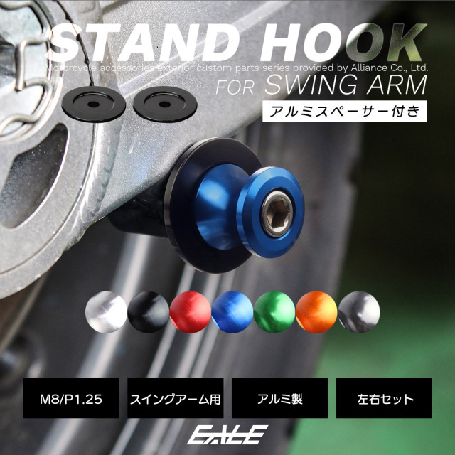 バイク スタンドフック スイングアーム用 M8 リア用 アルミ製 スペーサー付き 左右セット S-522 【メール便可】