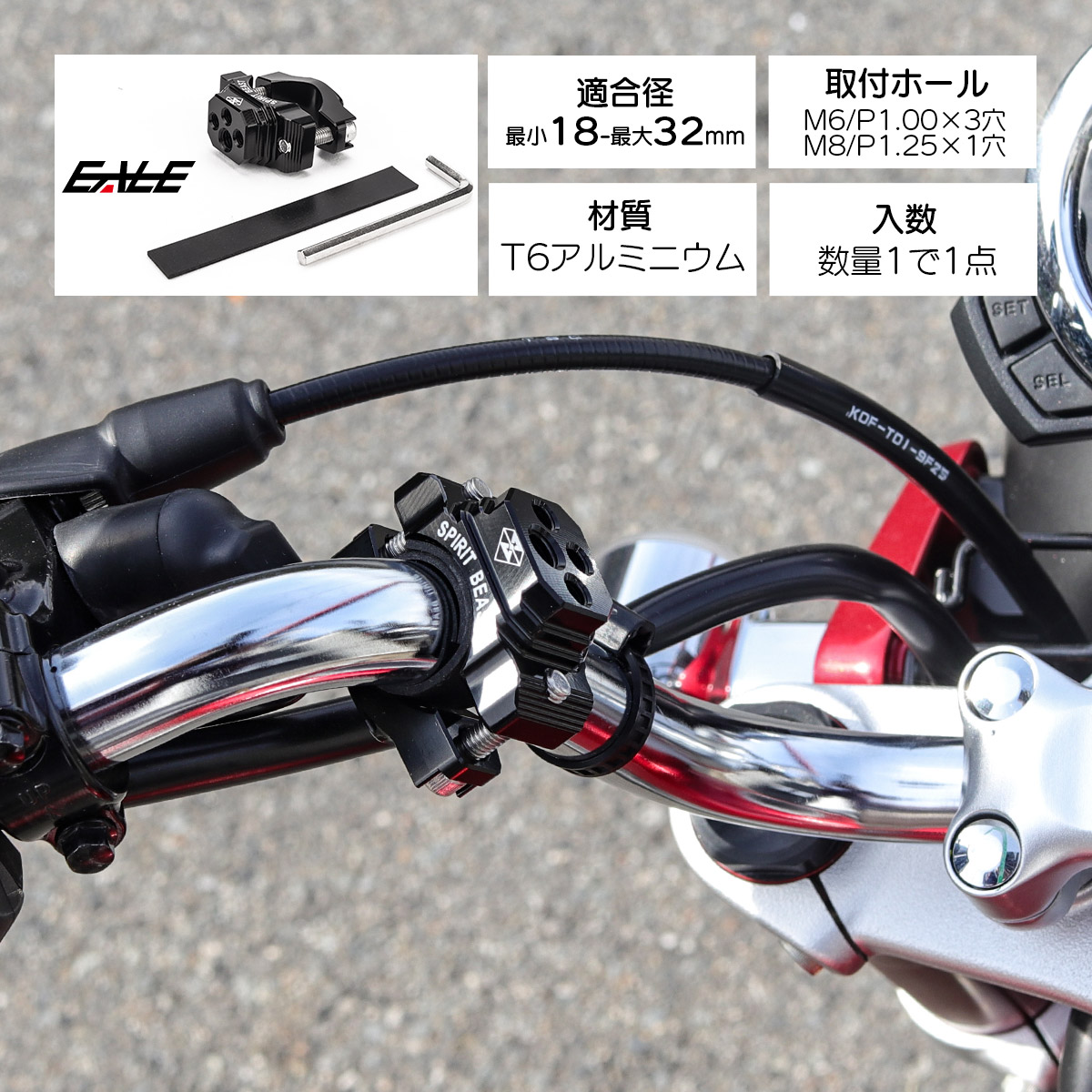 バイク ブラケット ハンドルバー パイプ クランプ M6 M8 4穴 アクセサリー増設 ブラック S-781 【メール便可】
