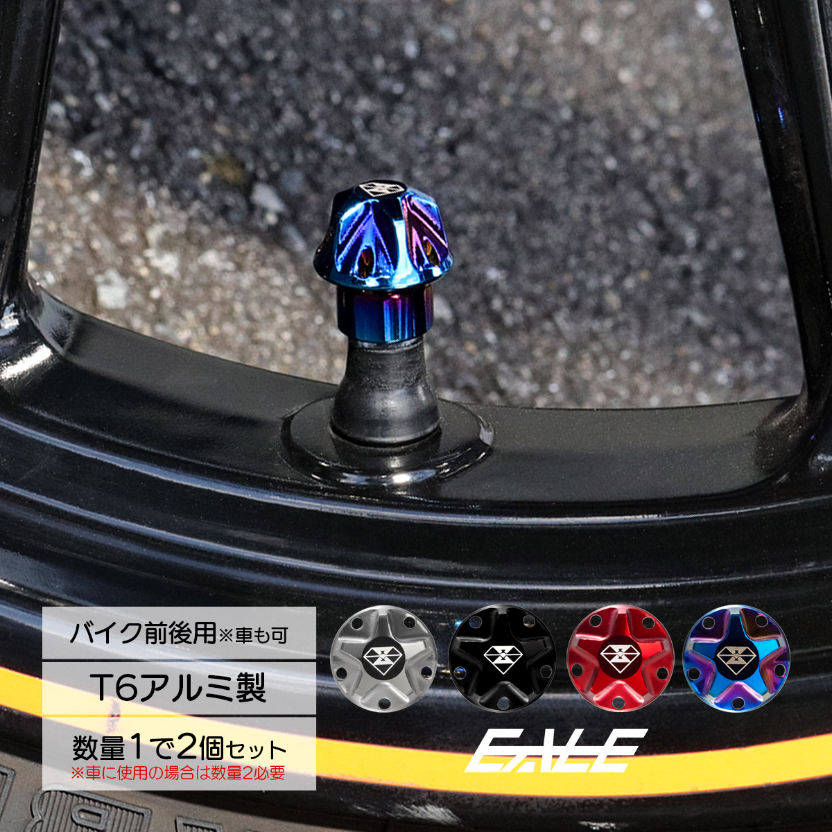 汎用品アルミ製タイヤエアバルブ 4本セット6色ラインアップ ...