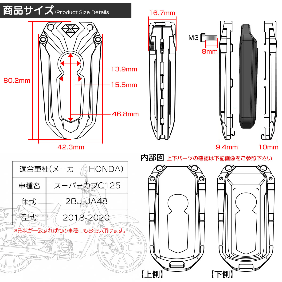 スーパーカブC125 JA48 2018-2020年 スマートキーカバー フォブキーカバー キーケース アルミ製 S-958-1 【メール便可】