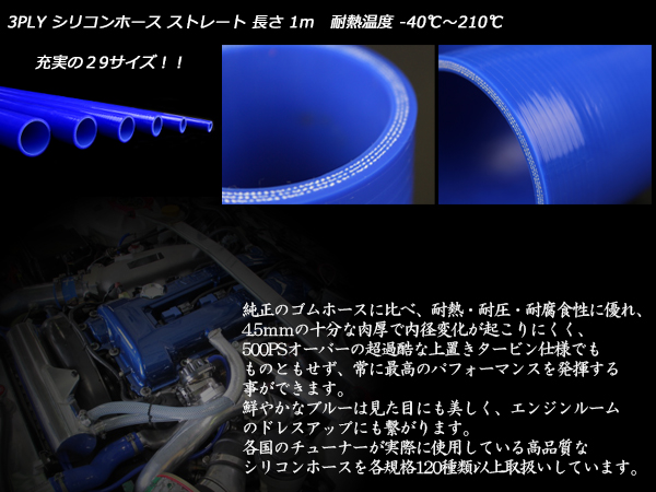 55Φ 1m 長尺 汎用シリコンホース ストレート 3PLY ブルー ( SL20 )