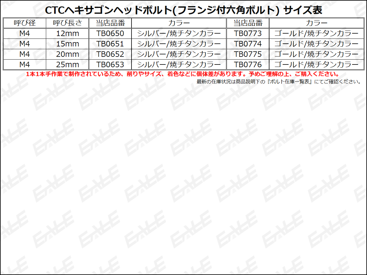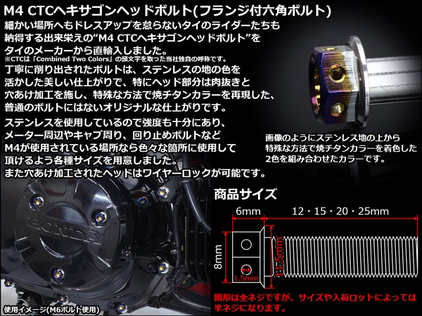 M4×20mm P0.7 フランジ ヘキサゴンヘッドボルト 六角ボルト ステンレス CTC シルバー&焼チタンカラー TB0652 【メール便可】