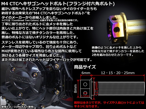 M4×12mm P0.7 フランジ ヘキサゴンヘッドボルト 六角ボルト ステンレス CTC ゴールド&焼チタンカラー TB0773 【メール便可】