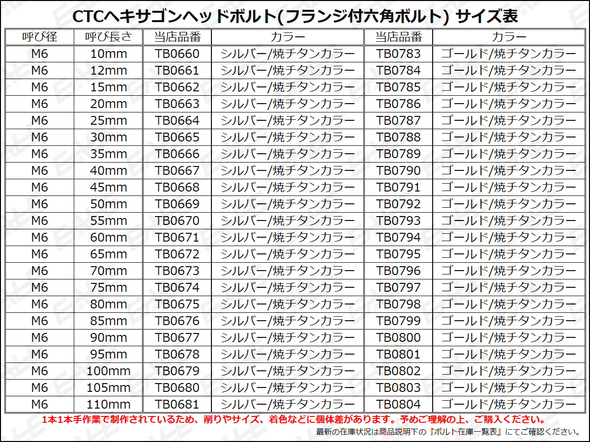 M6×10mm P1.0 フランジ ヘキサゴンヘッドボルト 六角ボルト ステンレス CTC ゴールド&焼チタンカラー TB0783 【メール便可】