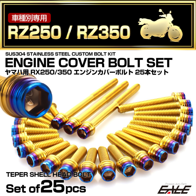 エンジンカバー ボルトセット RZ250 RZ350 25本セット テーパーシェルヘッド ヤマハ用 ゴールド&ブルー TB7182