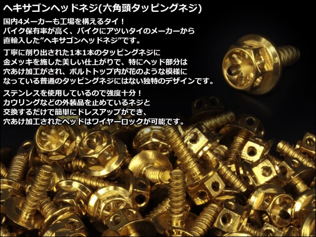 M5×16mm フラワーヘッドネジ タッピングネジ ステンレス 削り出し 六角頭 フランジ ゴールド TC0023 【メール便可】