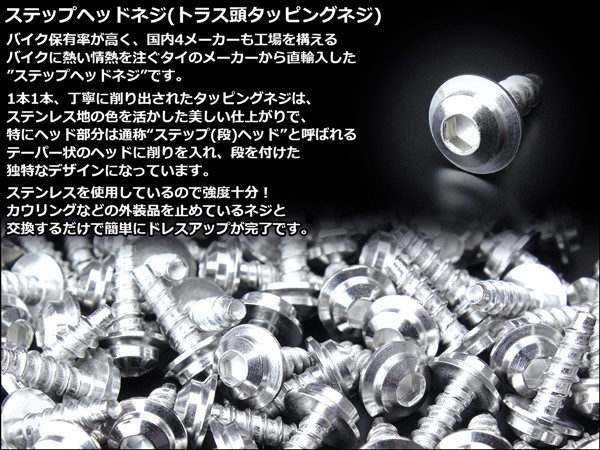M4×12mm ステップヘッドネジ タッピングネジ ステンレス 削り出し トラス頭 カウルやパネルなどに シルバー TC0031 【メール便可】