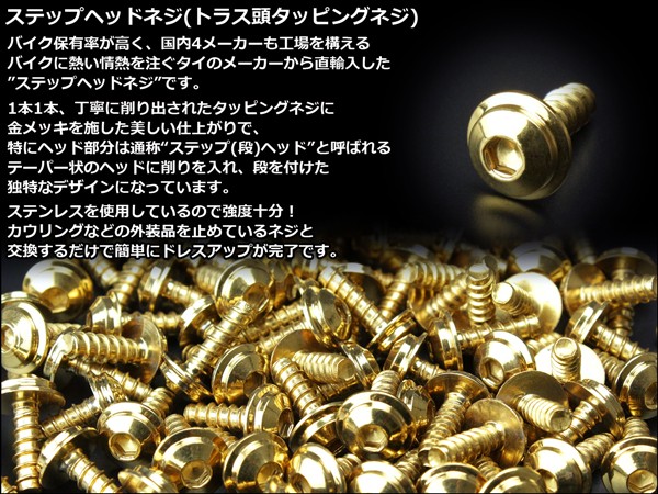 M5×25mm ステップヘッドネジ タッピングネジ ステンレス 削り出し トラス頭 カウルやパネルなどに ゴールド TC0040 【メール便可】