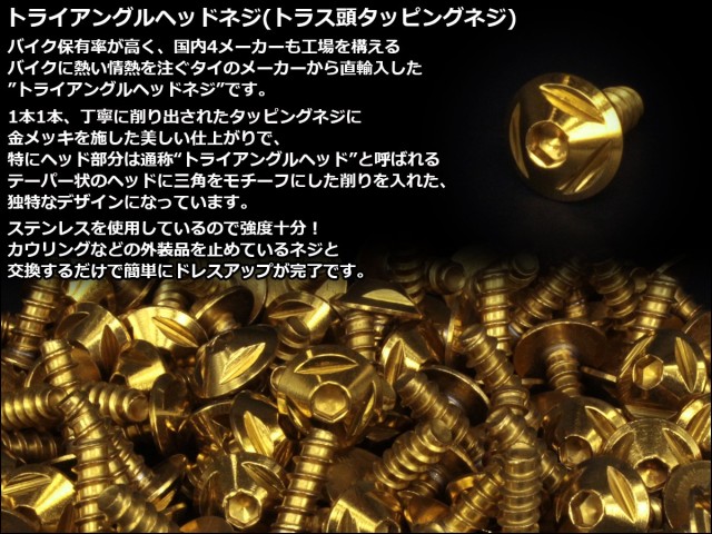 M5×25mm トライアングルヘッドネジ タッピングネジ ステンレス 削り出し トラス頭 ゴールド TC0100 【メール便可】