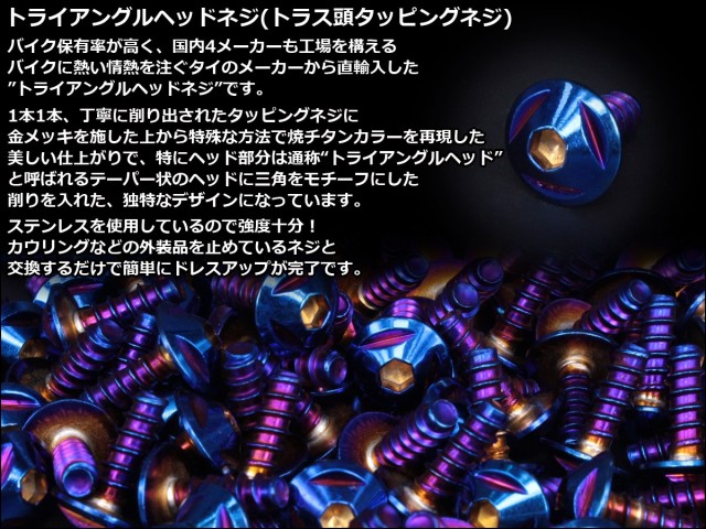 M4×12mm トライアングルヘッドネジ タッピングネジ ステンレス 削り出し トラス頭 焼チタンカラー TC0101 【メール便可】