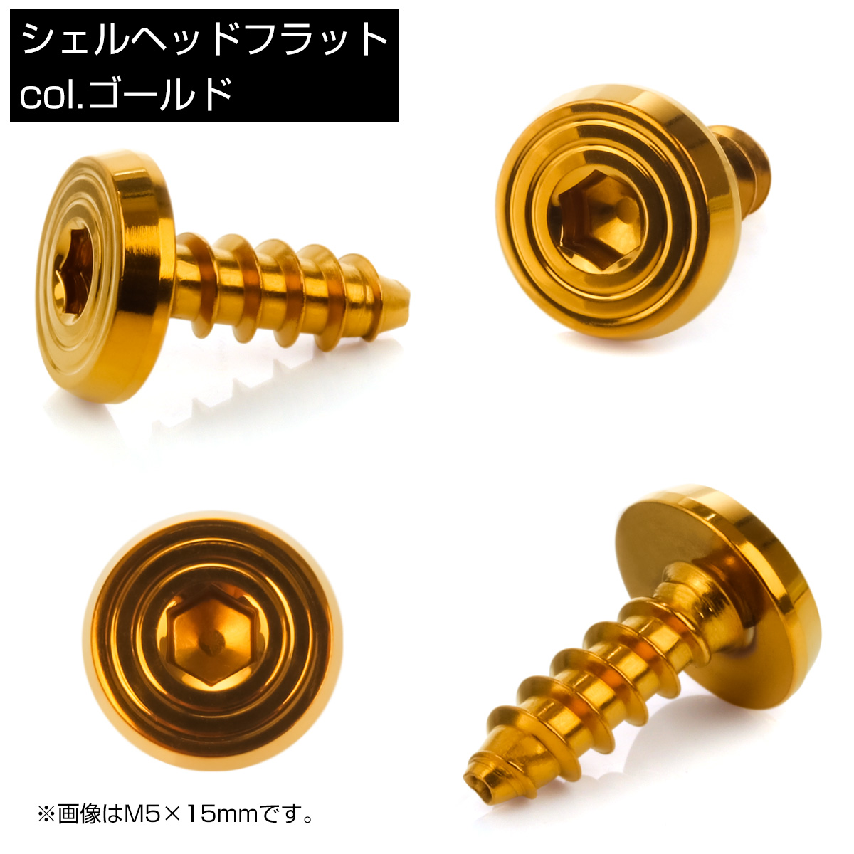 タッピングネジ M5×25mm シェルヘッドフラット 六角穴 フランジ付き ネジ SUS304 ステンレス ゴールド TC0160 【メール便可】