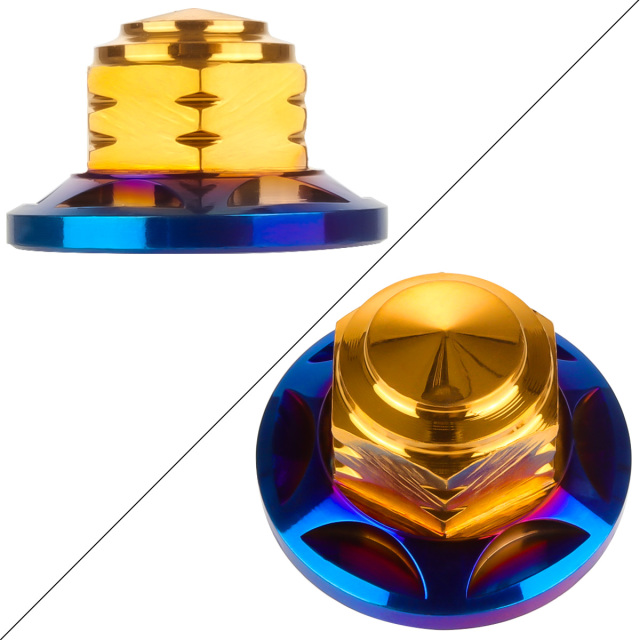 SUSステンレス M10スタードームナット 2個セット P=1.25 フランジ付六角袋ナット ゴールド&焼チタンカラー TF0153 【メール便可】