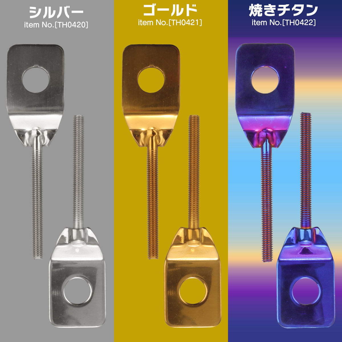 バイク用 ドライブチェーンアジャスター M12アクスルシャフト用 ボルト部 M6 P1.0 チェーン調整 ゴールド 左右セット TH0421 【メール便可】