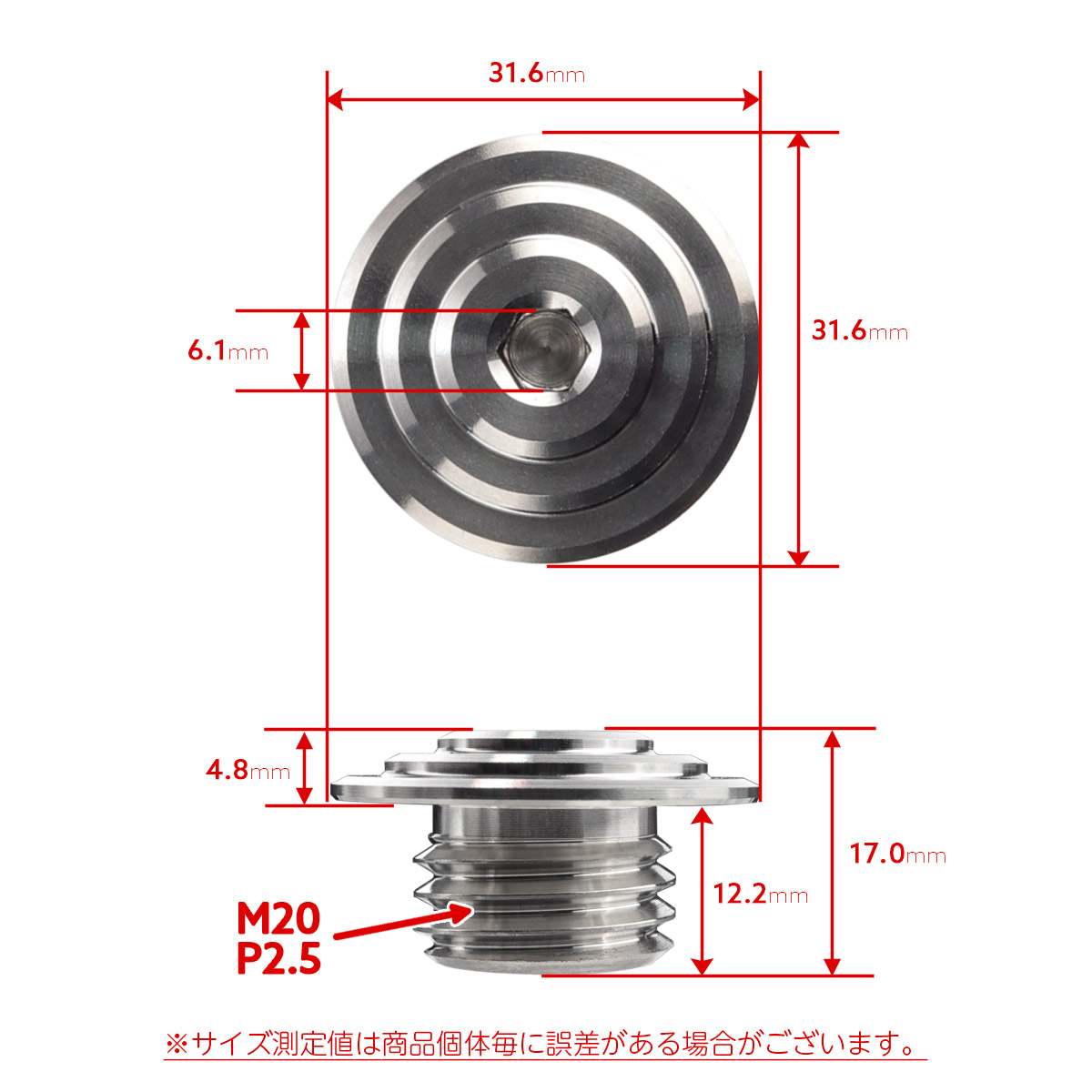 オイルフィラーキャップ M20 P2.5 六角穴 ステンレス製 マットシルバー 汎用 TH0475 【メール便可】